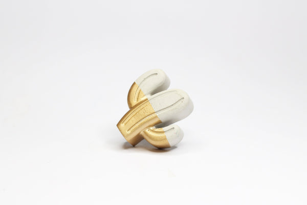 Concrete cabinet knob in the shape of a cactus. These knobs are flat and they're elevated from the drawer front/door by means of a special steel nut/bar (included) as pictured. This nut is about 9mm.