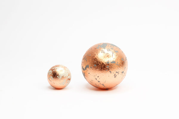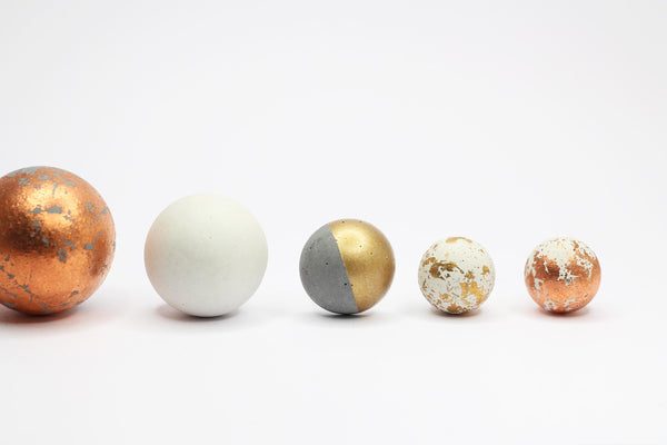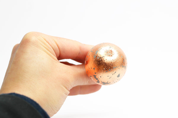 Spherical concrete cabinet knob with an imitation gold, silver or copper leaf finish. The knobs can be grey, white, black or otherwise pigmented concrete. Available in 4 sizes.