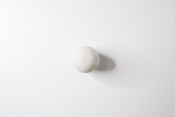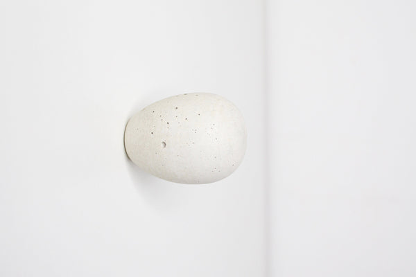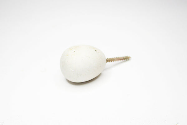 Cabinet knob made from grey or white concrete in an ovoid (egg) shape.