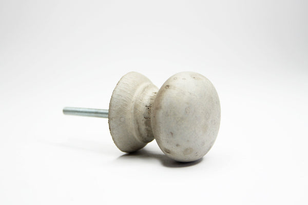 Concrete cabinet knob in the shape of a traditional wooden (turned) knob. Available in natural concrete or (half-)painted a variety of colours.