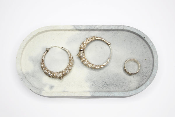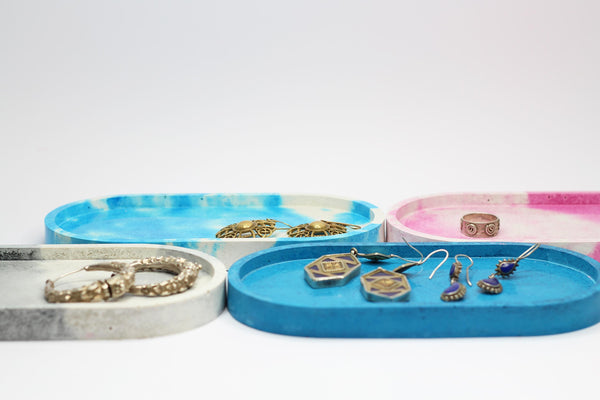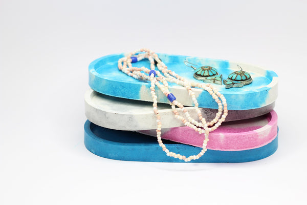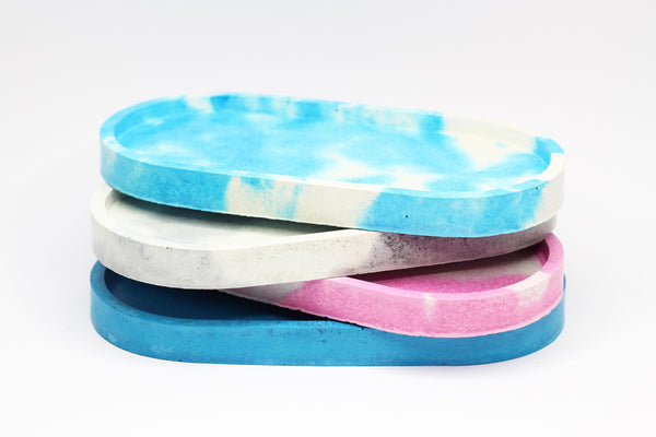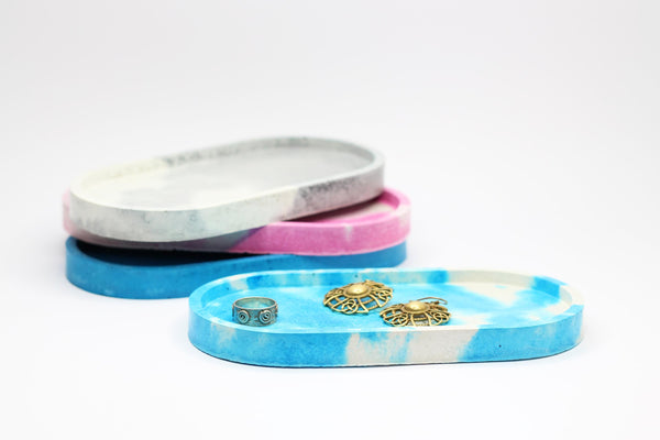 A beautiful white & grey marble tray perfect for any trinkets. Can be used as a catchall for jewellery, keys or as a desk organiser. 17cm long, it is large enough to support a small succulent plant pot, a couple of candles or a beauty product in a bedroom or bathroom. Made from genuine concrete, it is heavy and sturdy and has a base of natural cork (not pictured yet). We cure our items over a prolonged time and then seal them with natural wax for a beautiful shine and water resistance. This listing is for a white & grey marble tray. Any colours are available, please feel free to ask.