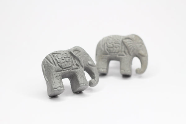 Cabinet knob handcrafted from concrete in the shape of an Indian Elephant. Available in white, grey or black concrete and a large variety of paint colours and finishes.