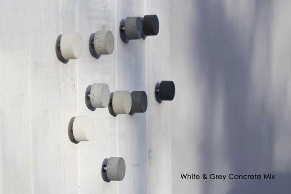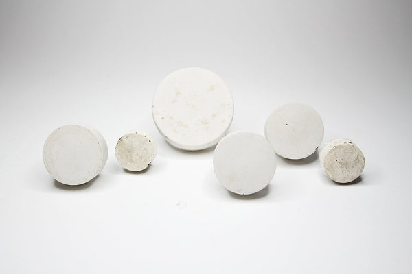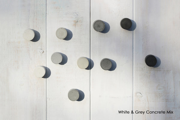 Elevate your furniture with these striking white concrete cabinet knobs, where industrial aesthetics meets refined simplicity. Each disc-shaped knob - available in three functional sizes - features a raw, minimalist design that complements contemporary interiors. Perfect for upcycling projects or refreshing existing cabinetry, these knobs introduce a touch of architectural elegance to any space. The smooth concrete finish delivers a sleek, tangible quality that transforms ordinary storage into a statement piece of modern home décor. Available in plain natural off-white concrete or half-painted.